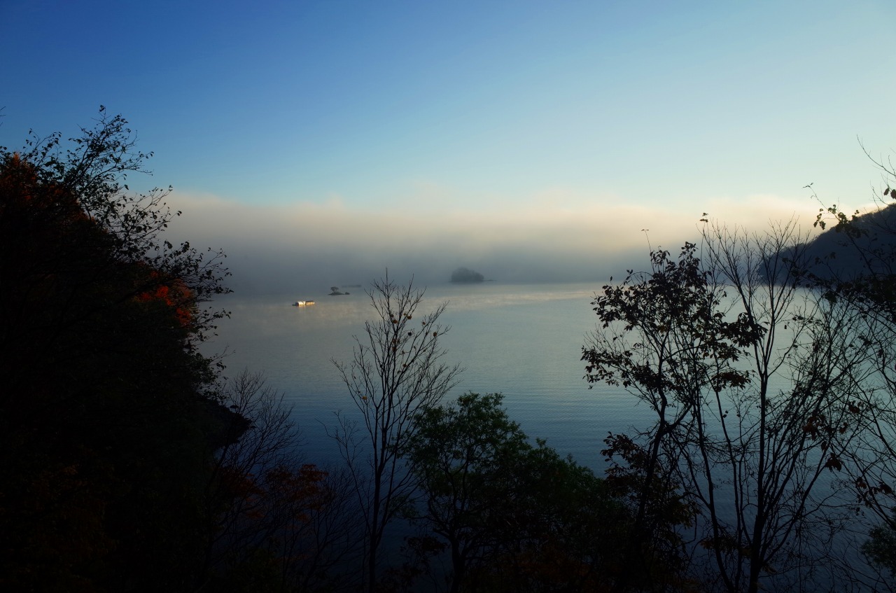 登山口は雄子沢登山口ですが、時間があるので少し喜多方方面へ車を走らせます。雄国沼では夜明けの太陽が湖面をゆっくり染め上げていました。風が吹くと湖面に小さなさざ波が立ち、やがて静かな湖面に戻ります。