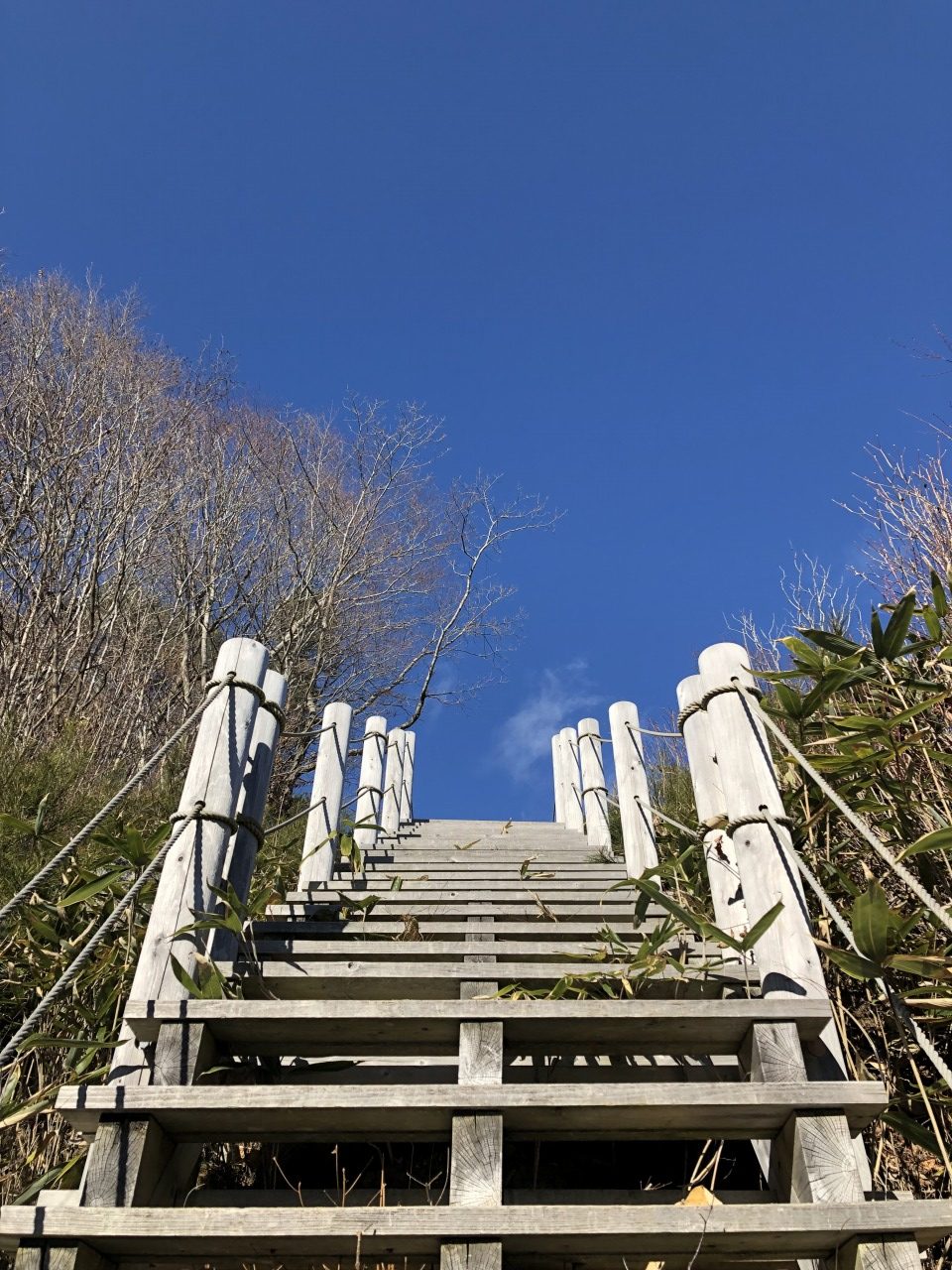 本当に急な登りですね。荷物が多いので、思わずロープを握ってしまいました。