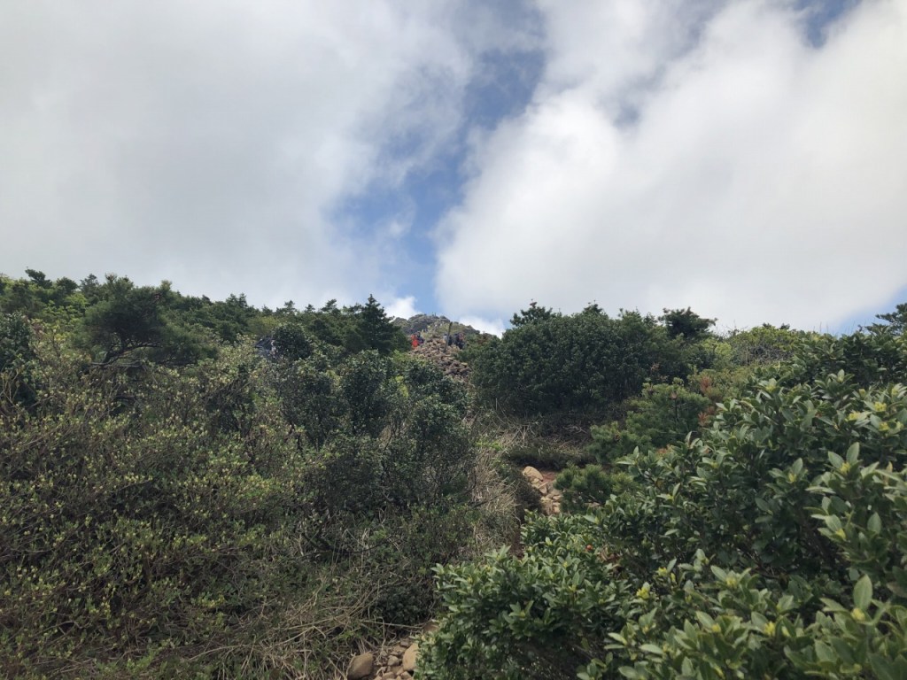 かすかに遠くに見える山頂に向かって歩き始めます。ここからは標高差350mくらいでしょうか。