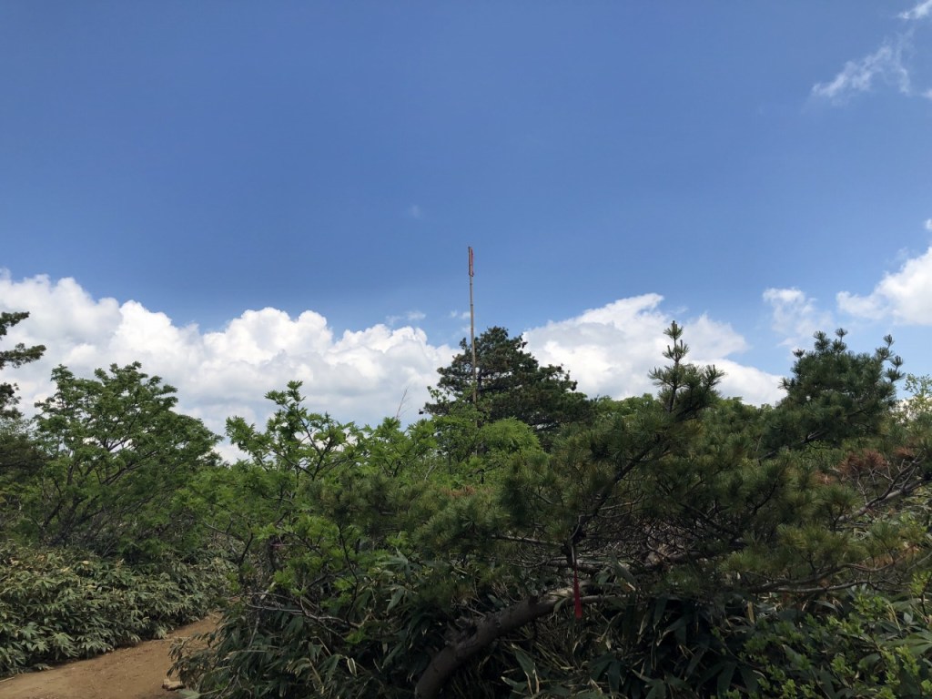 山頂まで来ると、かなり多くの登山者の方がいらっしゃいました。少し驚いたのですが、革靴、ワイシャツで下山してくる登山者が3名いました。一体何者でしょうか?3人のうちのお一人は大変歩きにくそうで、ヨレヨレ歩いているので見ているこちらが心配になってしまいました。ギリギリまで見ていましたが、下山中なのでたぶん大丈夫でしょう。帰りも同じ道をピストンするので何かあったらその時にヘルプすれば大丈夫でしょう。