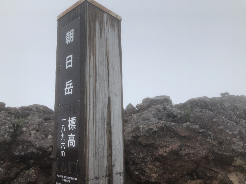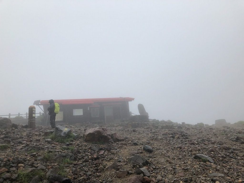 大きな鎌をもって登山道の整備をしている人がいました。遭対協の方がなんと雨の降る中、登山道の補修をされていました。いや~頭が下がります。(この後朝日岳、三本槍岳を登って下山しますが、自分が下山するときにちょうどこの方も下山されていました。こういう方に山は守られているんですね)