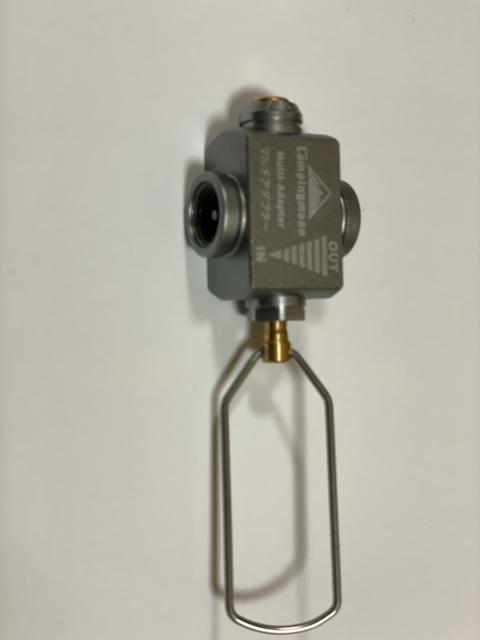 商品名はキャンピングムーン、マルチガスアダプターと言うものらしいです。アマゾンで3480円で購入。 ここに貼ってある写真はOD缶からOD缶にガスを移し替える器具になります。