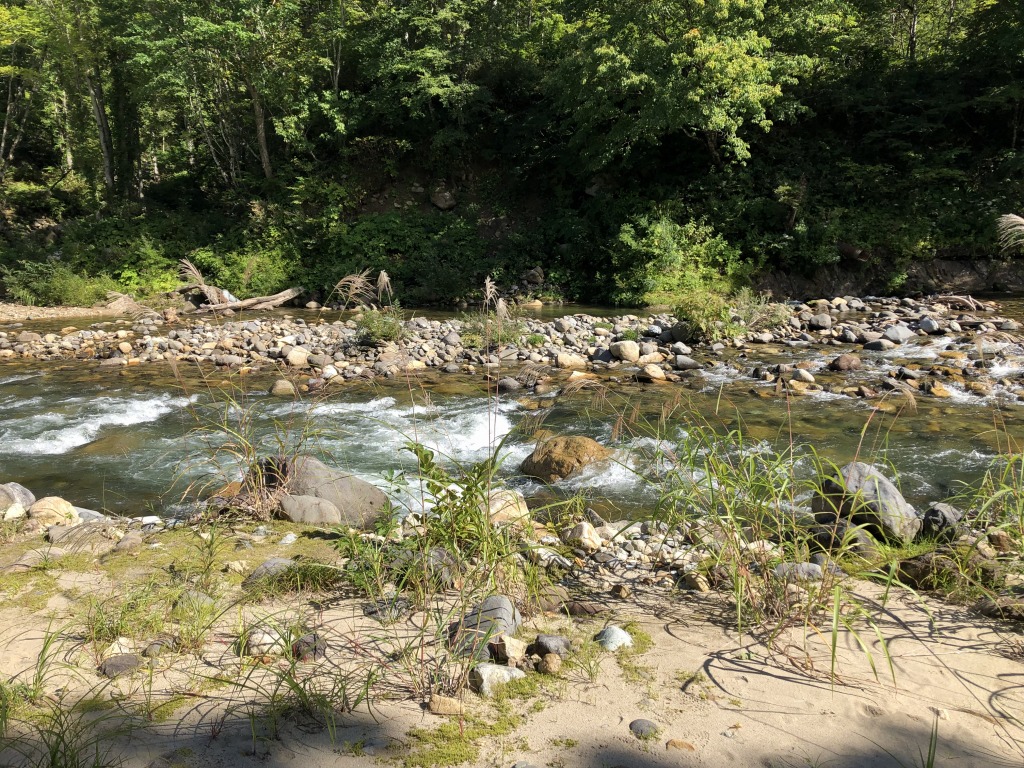 宿に荷物を置き、もう今日は何もすることはありません。宿の近くの只見川で川を見たり、携帯電話の電波を確認したり、小屋のバッジを確認したり、時間をつぶします。