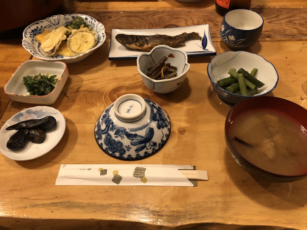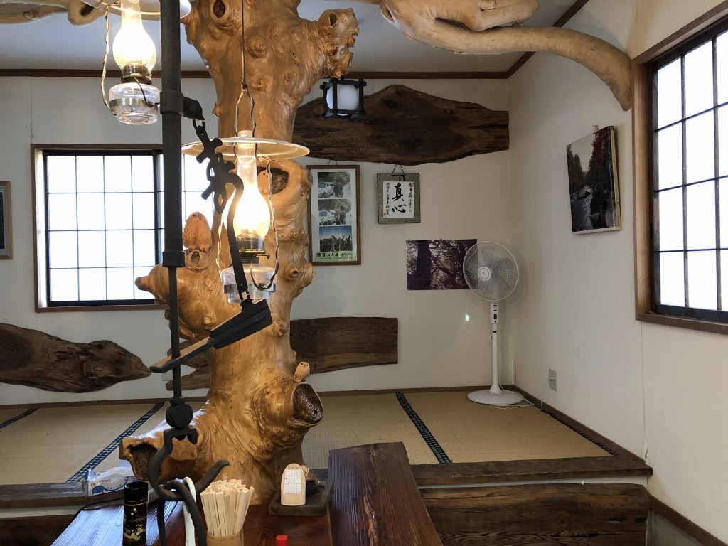 会津若松からは約4時間弱の行程です。道中の食堂でお昼を食べ、車は桧枝岐から御池へ、そこから峠の細道をうねうねと走り、本日の宿に到着です。
