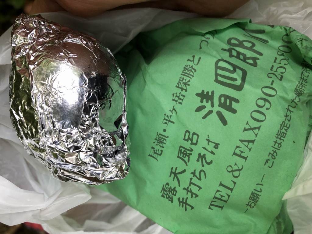 小休止をとりました。宿で前日に握って頂いたおにぎり2つとゆで卵を頂きます。