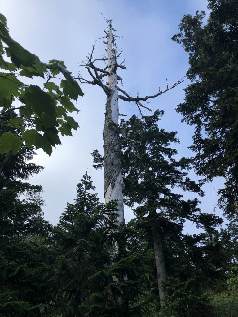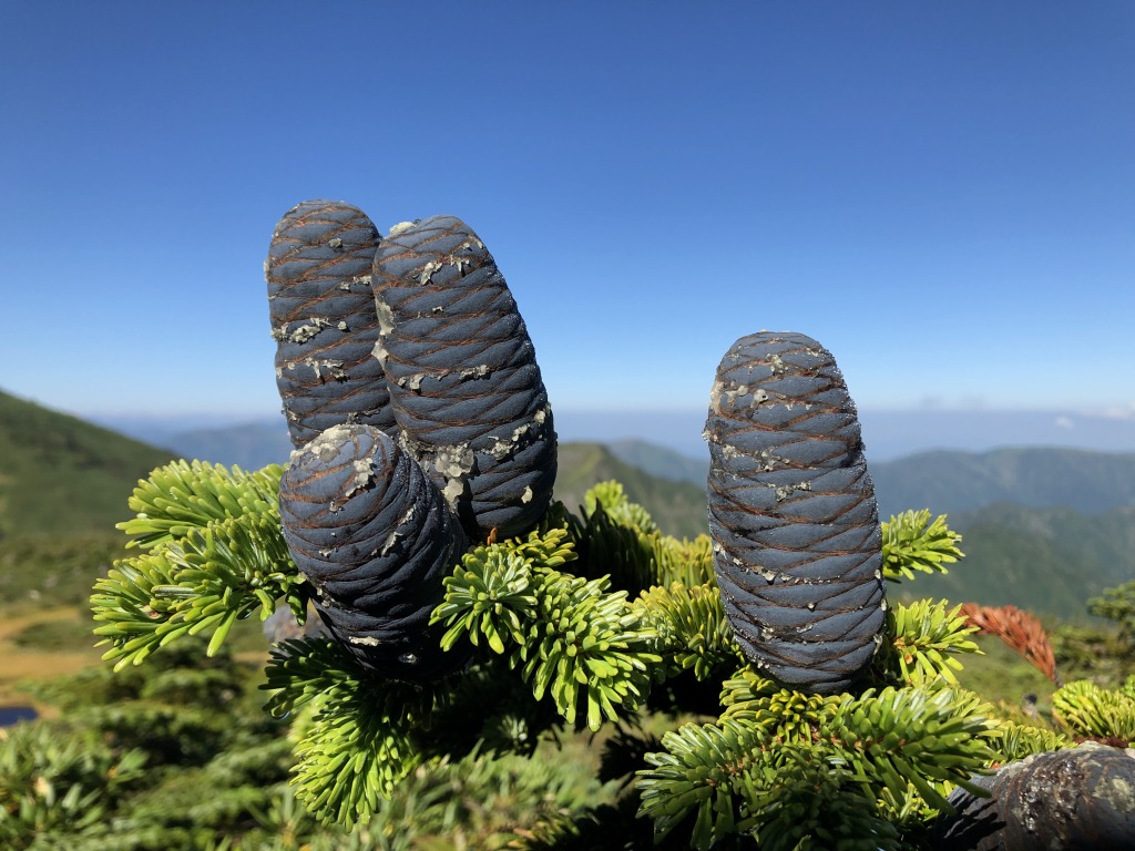 紫色のオオシラビソの松ぼっくりです。綺麗な松ぼっくりですね。足元に落ちていたらお土産にしたかったのですが残念ながらありませんでした。