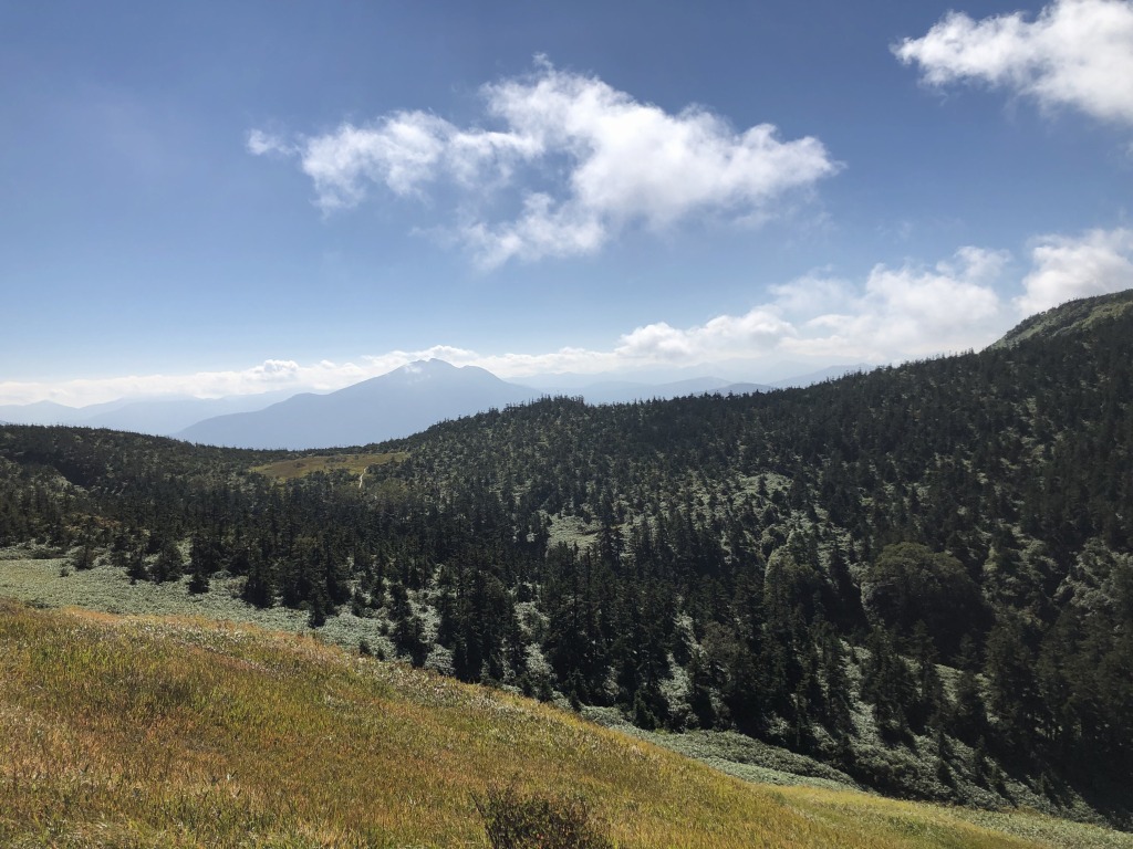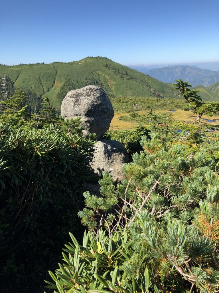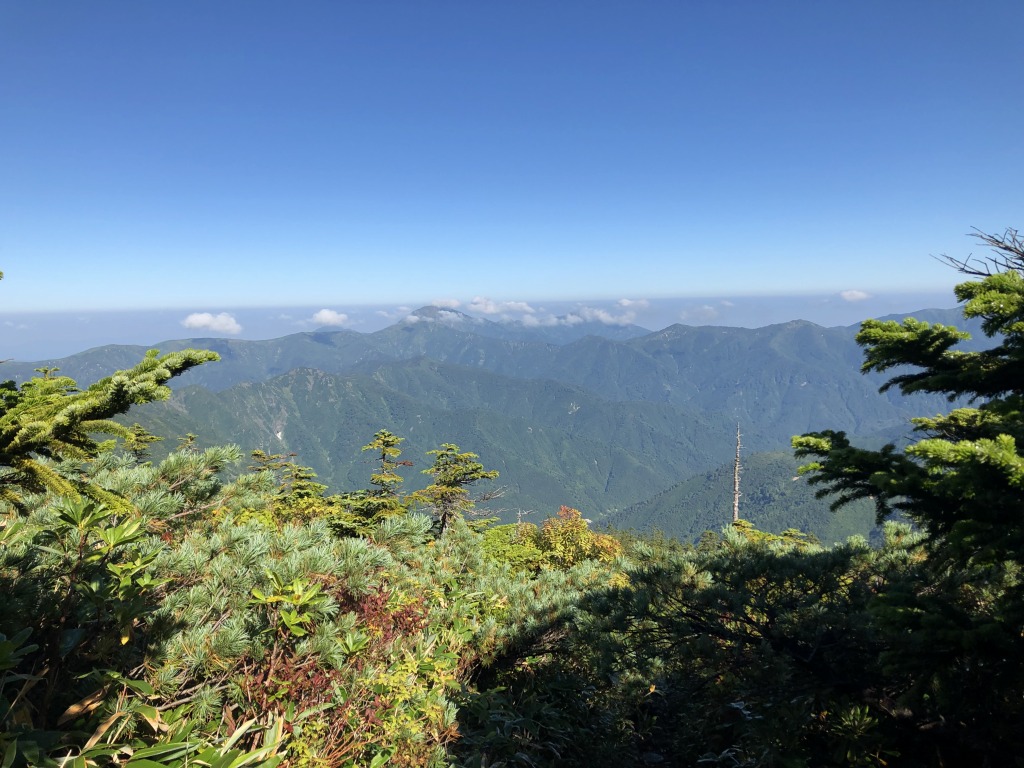 山頂尾根筋に到着。一気に開けた視界に息をのみます。
