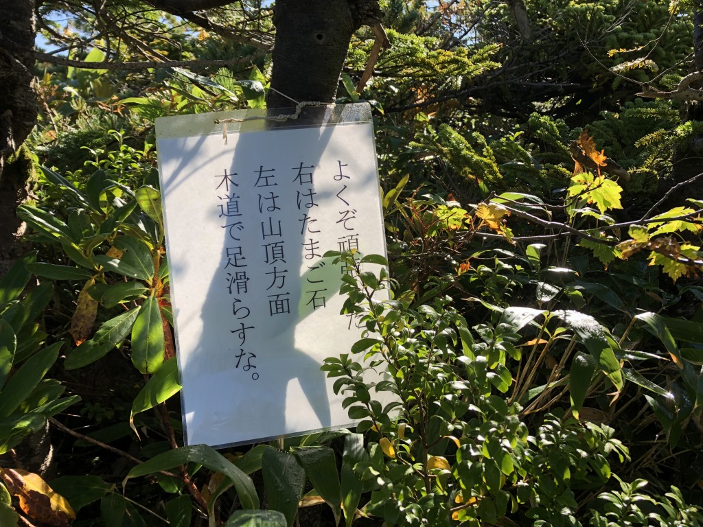 たまご石、山頂分岐に到着しました