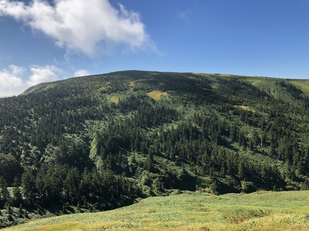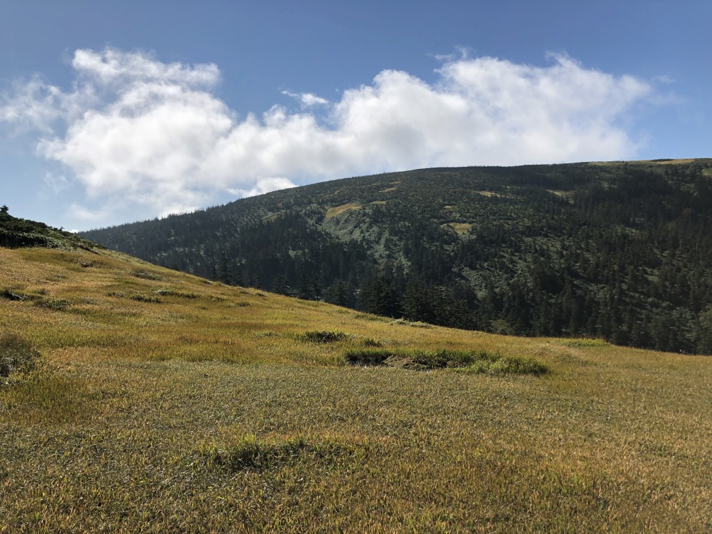 登りきったところから、平ケ岳のおおらかな柔らかい山頂が見えます。