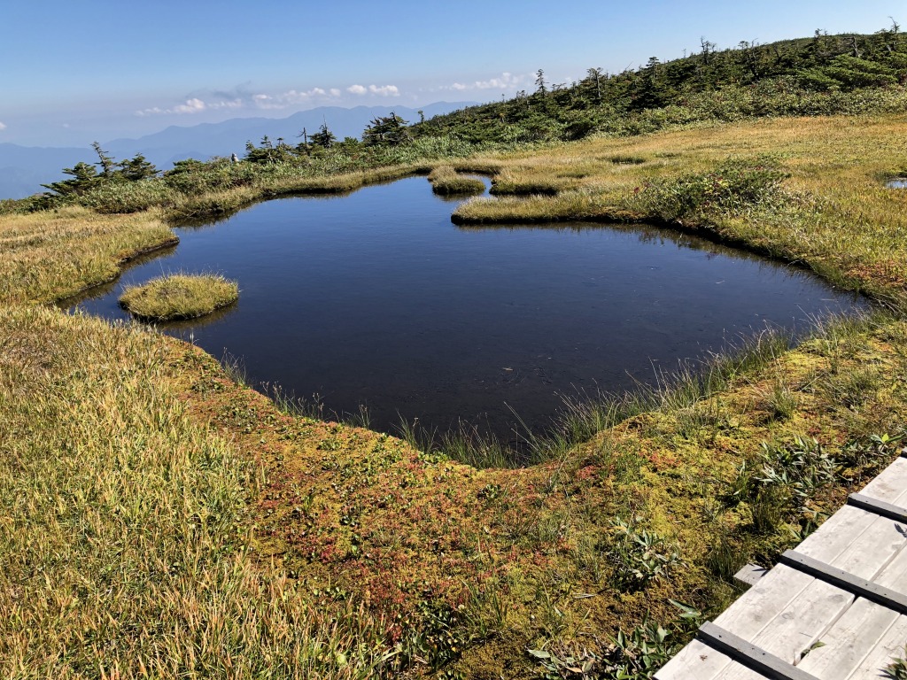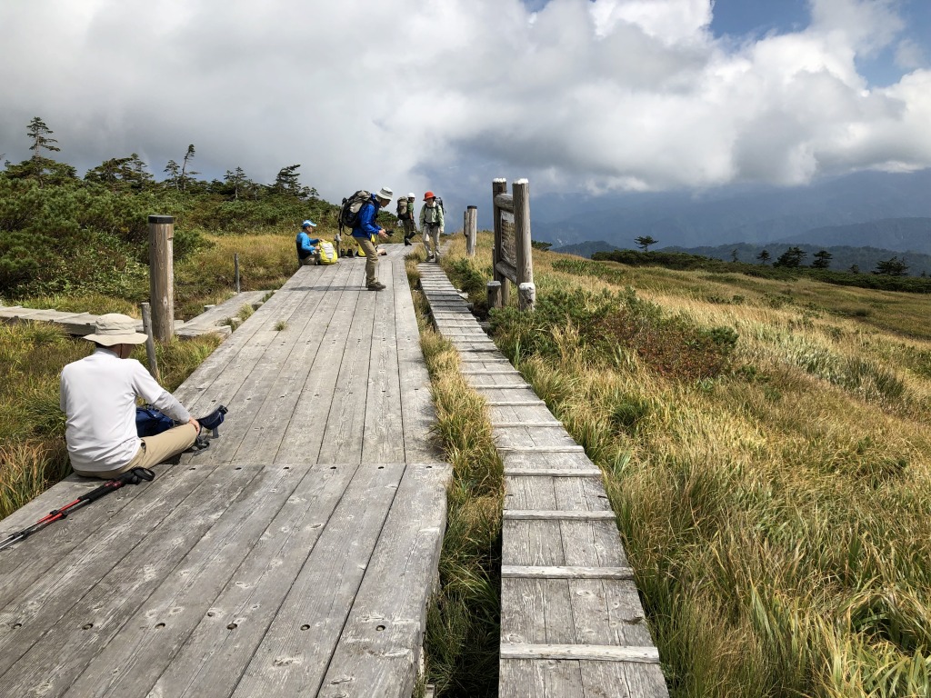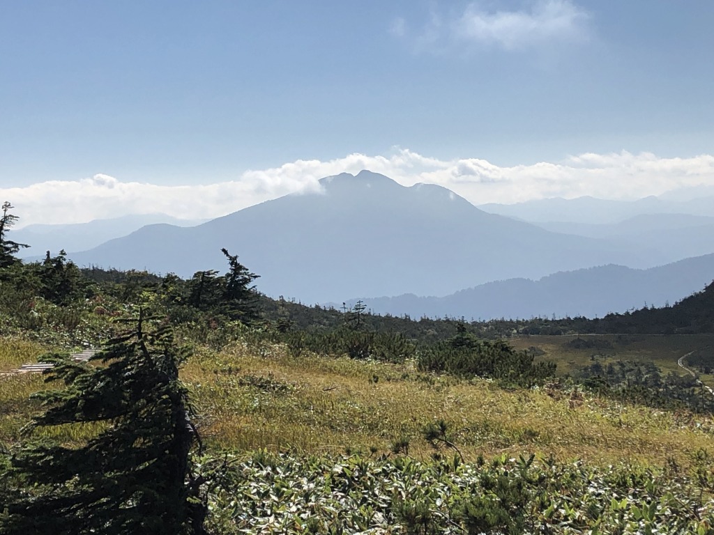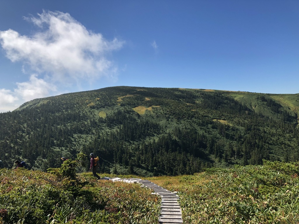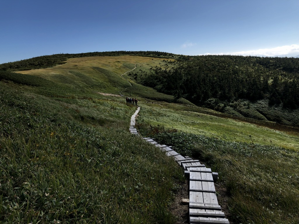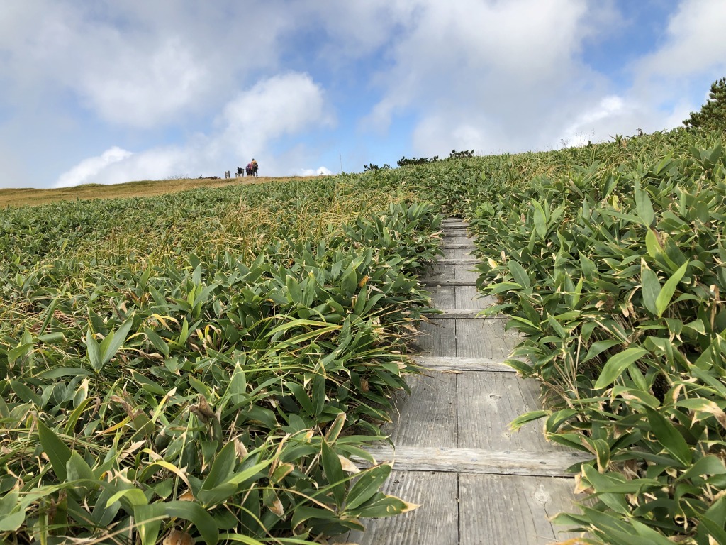 たまご石から山頂へは木道を歩いていきます。距離は1.3キロくらいですが、目視では結構距離があるように見えますね。