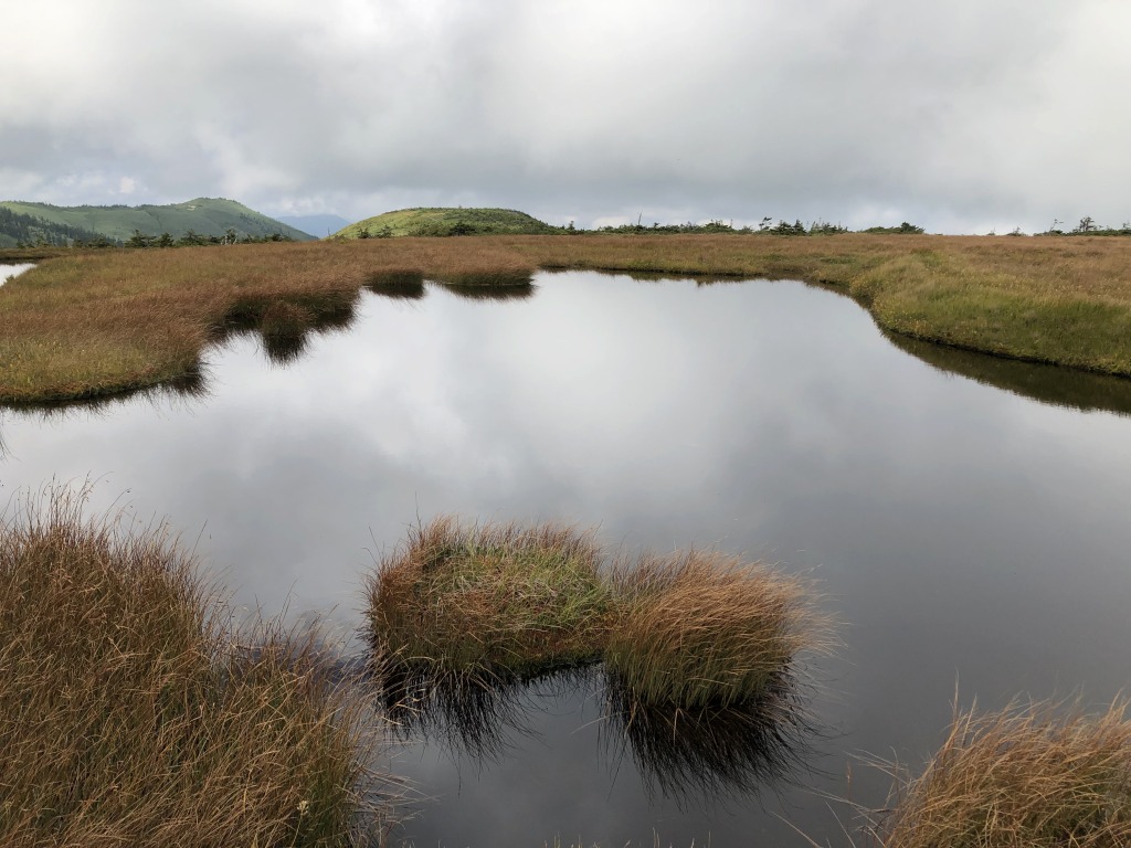 ところどころに池塘が見えます。豊かな水の山でもあるんですね。