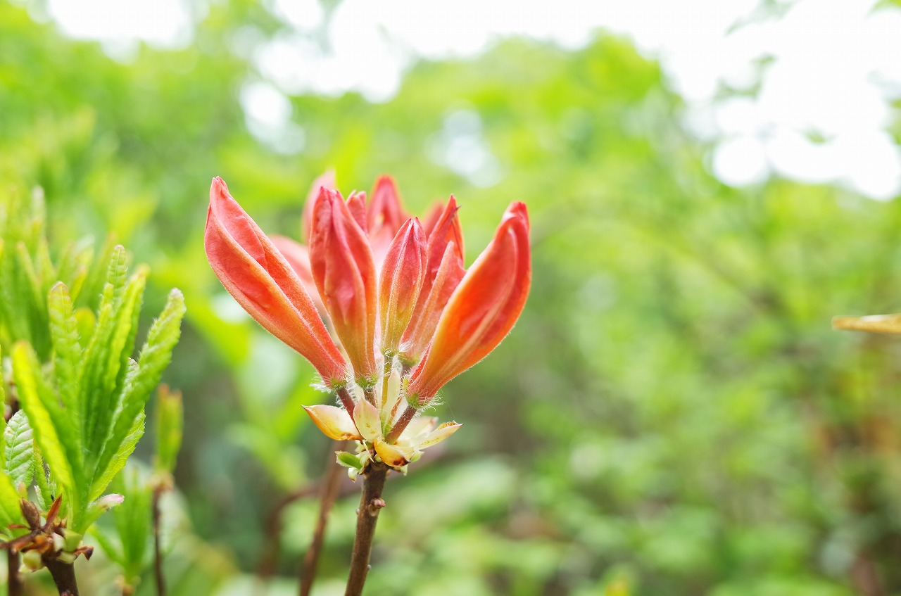 お花がお出迎え レンゲツツジですね。鮮やかな朱色です。